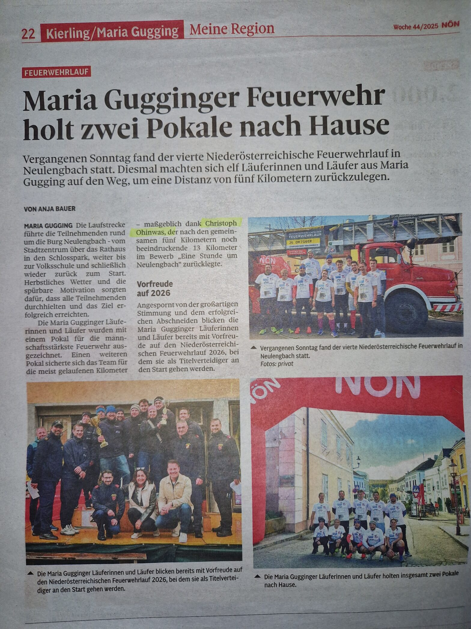 NÖN 44/2025: Christoph Ohniwas vertritt Maria Gugginger Feuerwehr beim NÖ Feuerwehrlauf